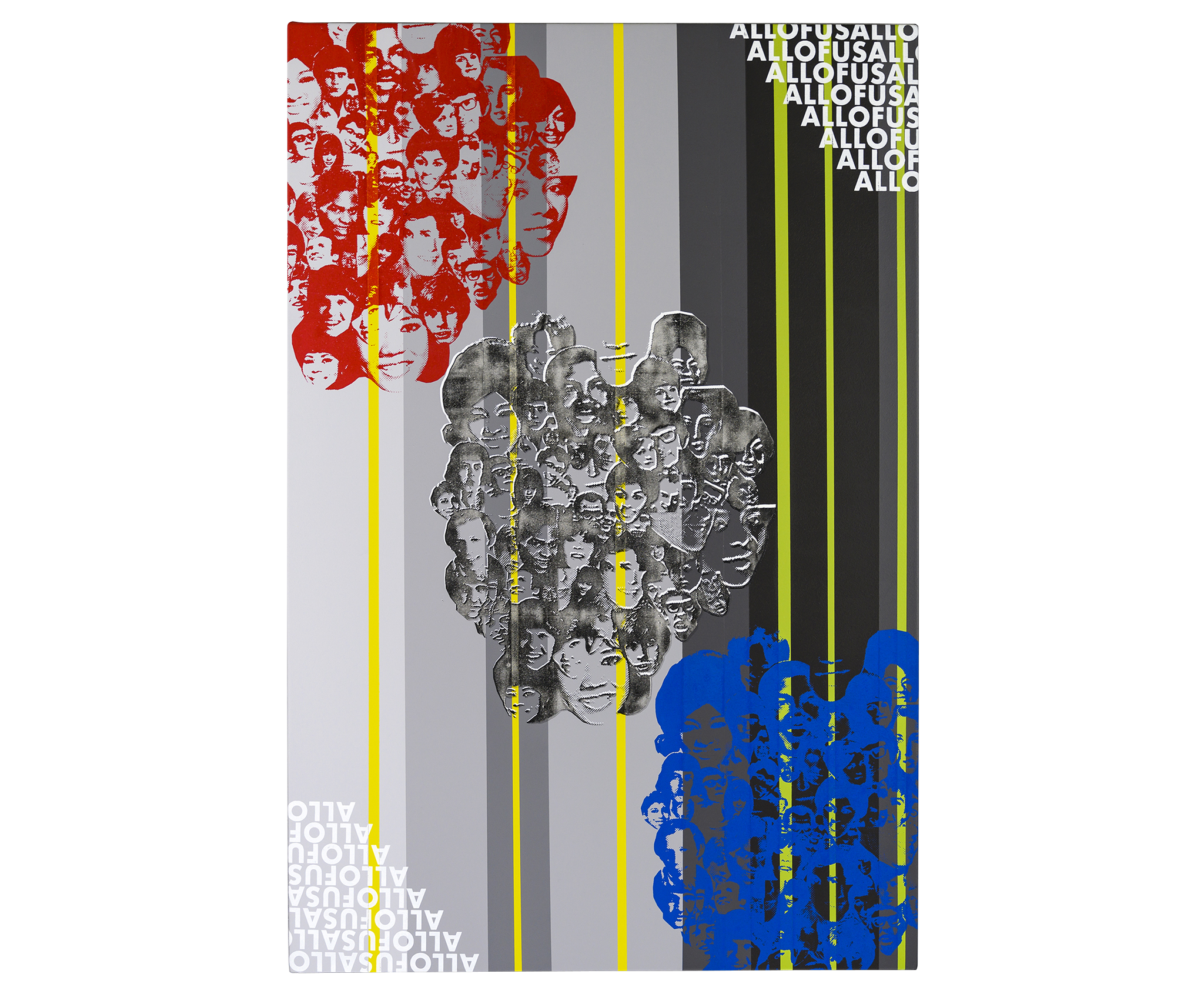 This work features silkscreened imagery appropriated from high school yearbook photos of well-known musicians, capturing them at a formative moment—before fame, persona, and public mythology took shape. Through layers of acrylic serigraph and hand-painted detail on clear industrial-grade vinyl, the piece freezes these youthful, unguarded faces in time. Stretched across a handcrafted wood panel, the surface becomes both portrait and artifact, exploring the gap between origin and icon. By recontextualizing these early images within a fine art framework, the painting questions celebrity, identity, and the subtle traces of creative potential visible before the spotlight ever hits.
