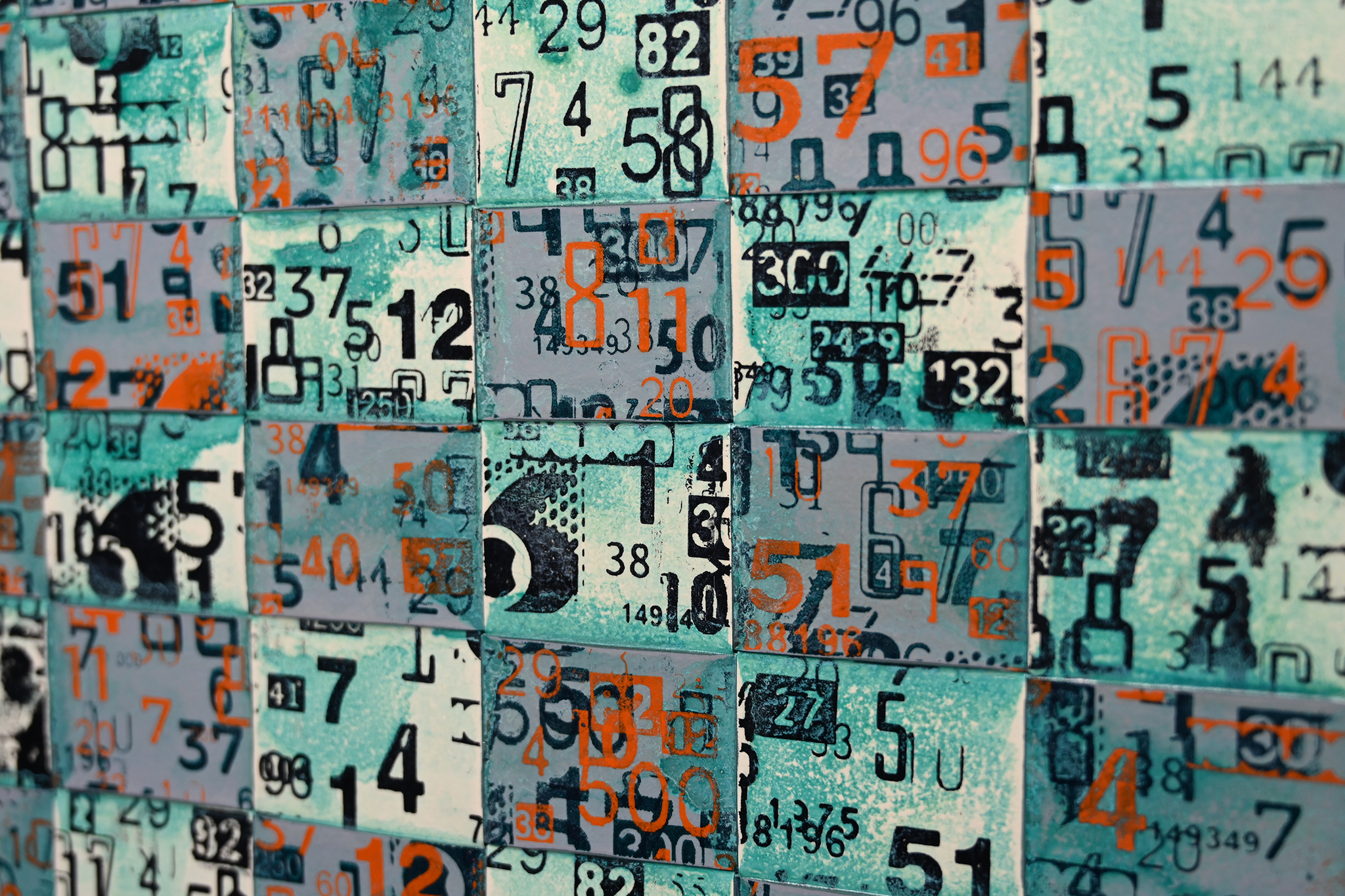 Lucky Numbers examines the intersection of chance, superstition, and design through layered silkscreen prints on vinyl. Featuring numerical sequences rendered in a variety of typefaces, the prints are cut and woven into a complex grid across a handcrafted wood panel. The weaving process both obscures and reveals, echoing the unpredictable nature of luck and the layered ways we assign meaning to numbers. At once graphic and tactile, the work invites contemplation of fate, repetition, and the rituals we create in search of fortune.