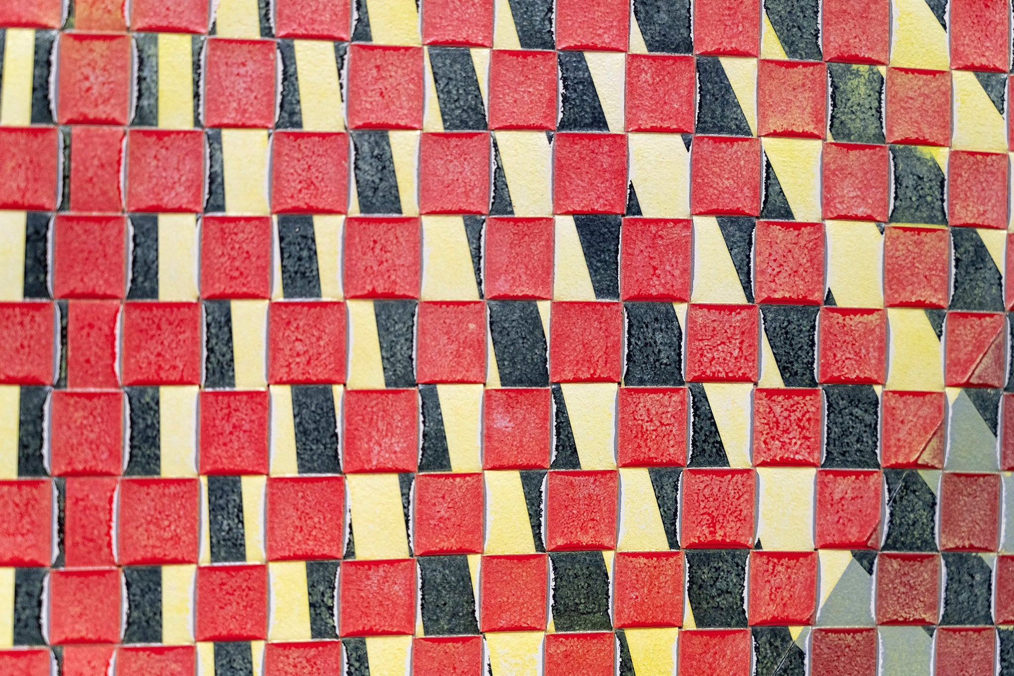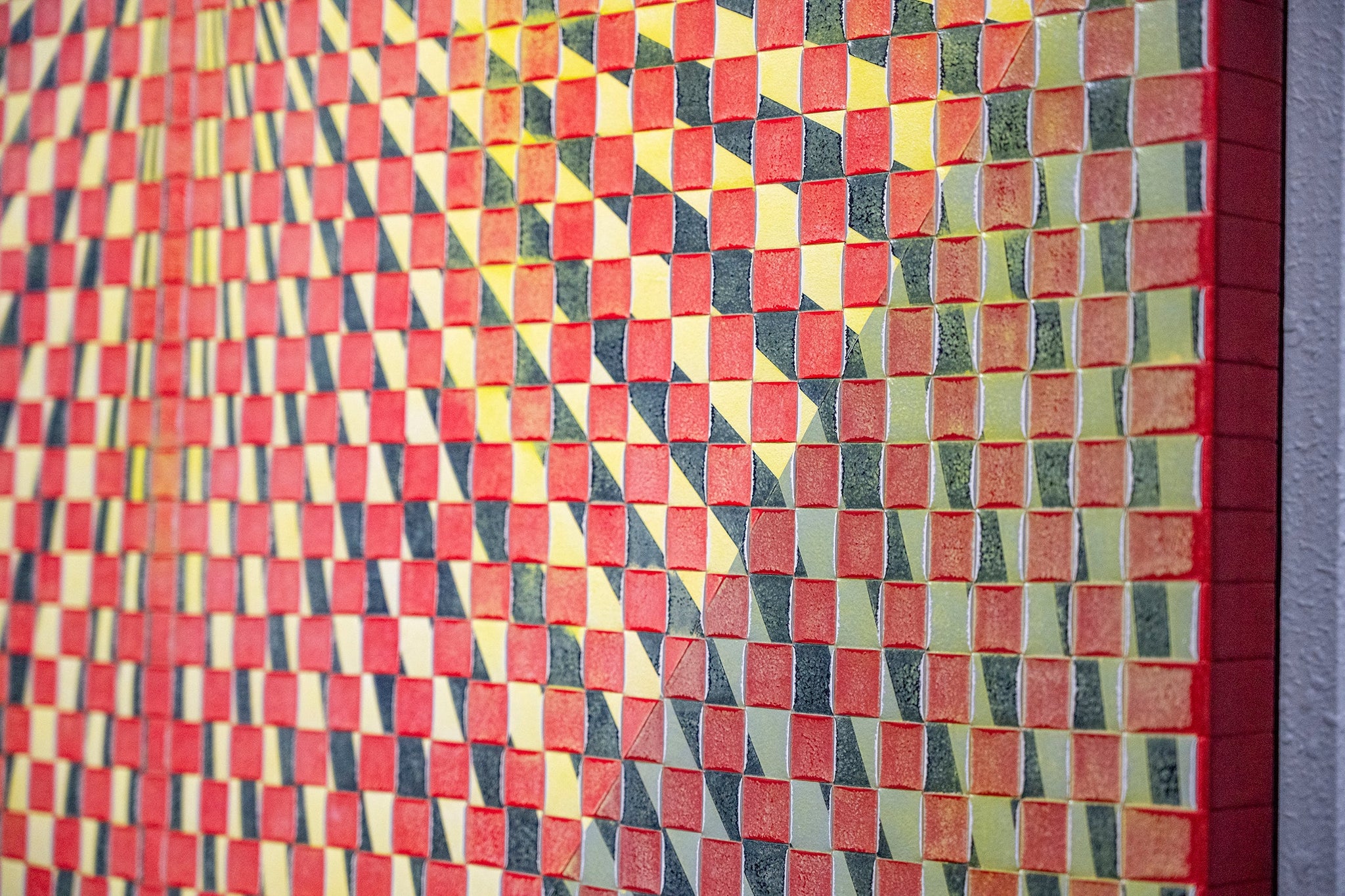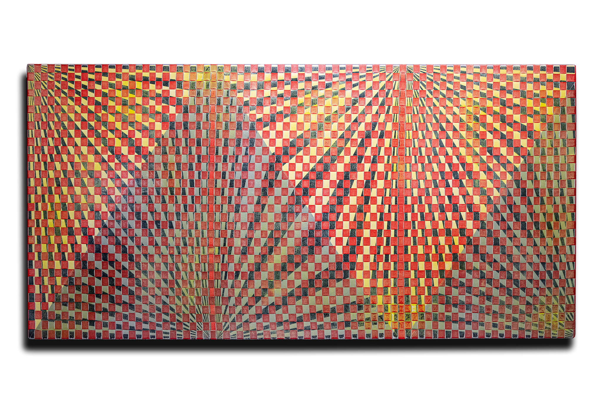 Category: Abstract , acrylic , Geometric , mapping the reflex , pattern , red , screen print , serigraph , Strip Painting , woven , yellow